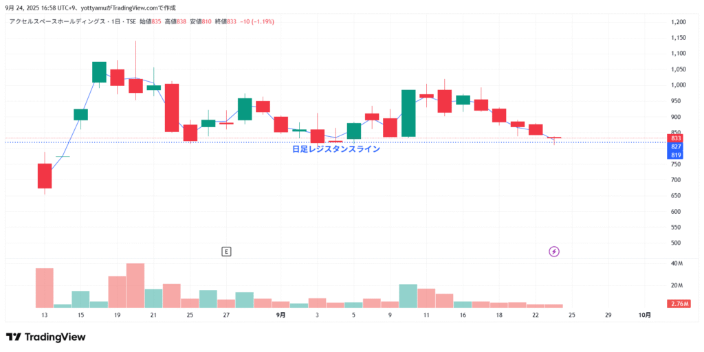 上値レジスタンスラインになりそうなものが多かったため、出来高の推移を見ながら売り目線でトレードしました。