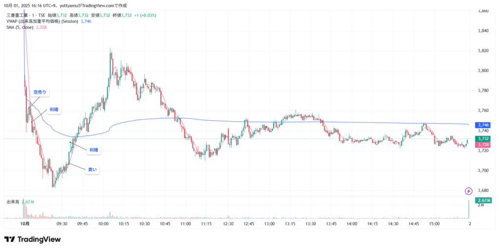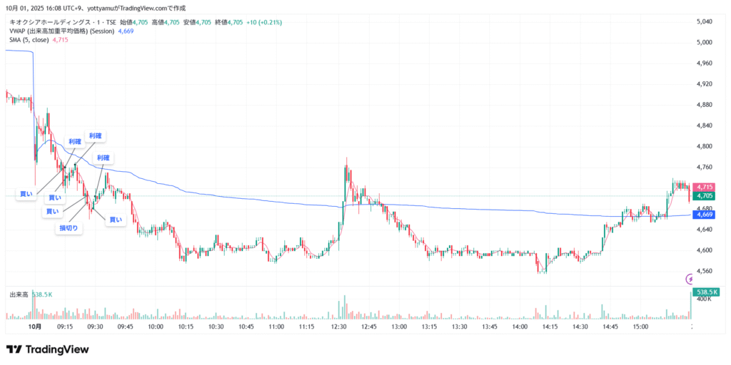 前日終値あたりでのリバウンド狙いで何度かトレードしました。