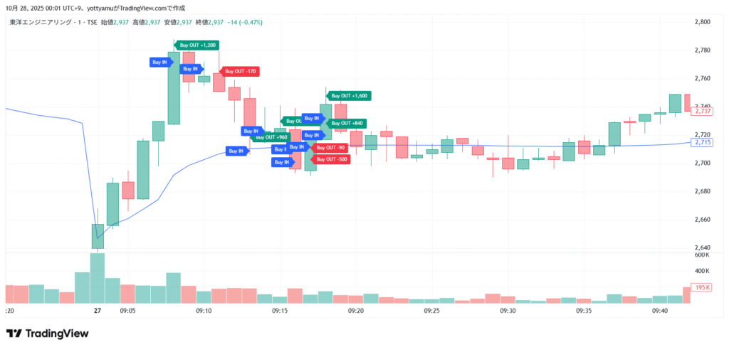 【Pine】TradingViewチャート上に自分の取引履歴IN/OUTのラベルを作成・表示して見える化するインジケータを公開(楽天証券はそのまま使えて他の証券会社の場合は別途修正が必要)|ふも