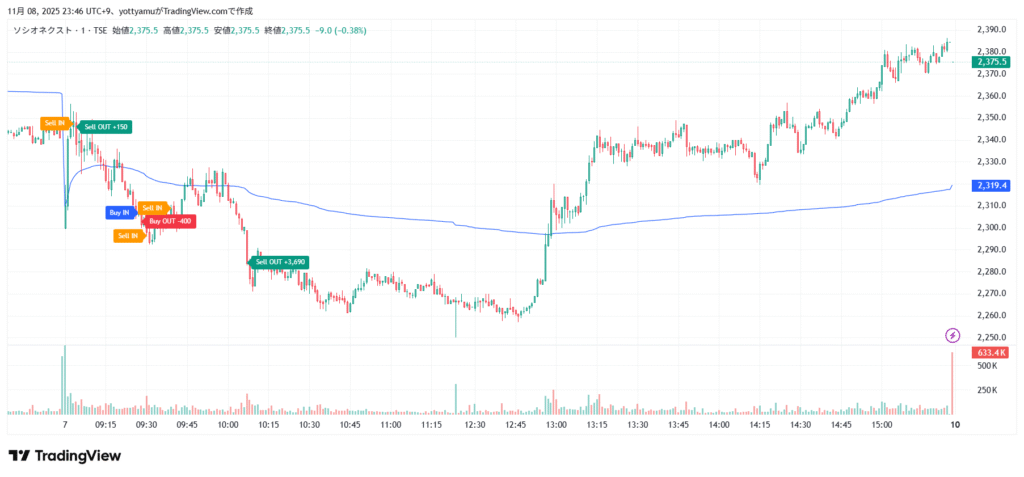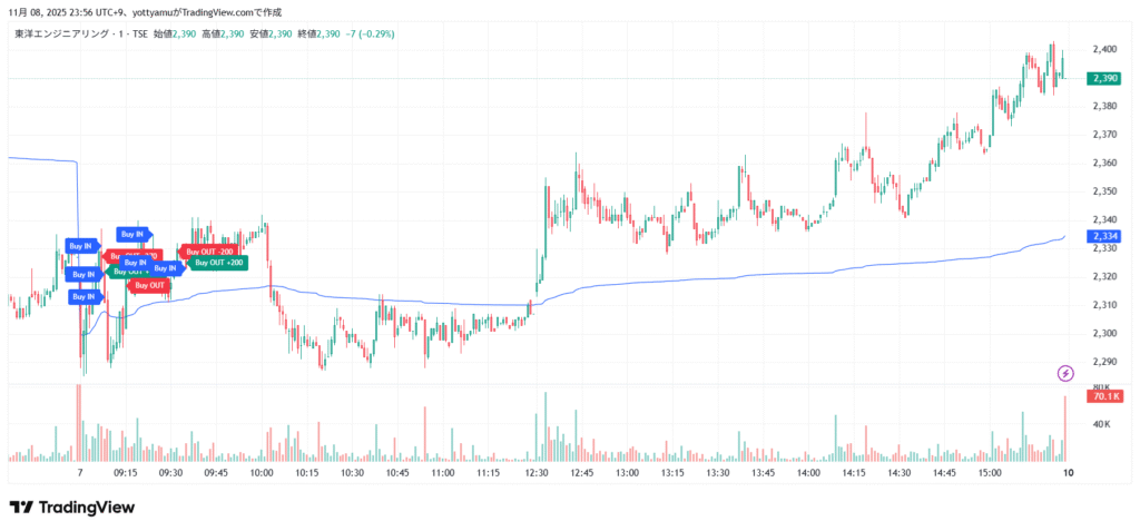 それに朝一の出来高を消費(デイトレ損切りと長期保有の選別?)し、反発しやすいと思っています。