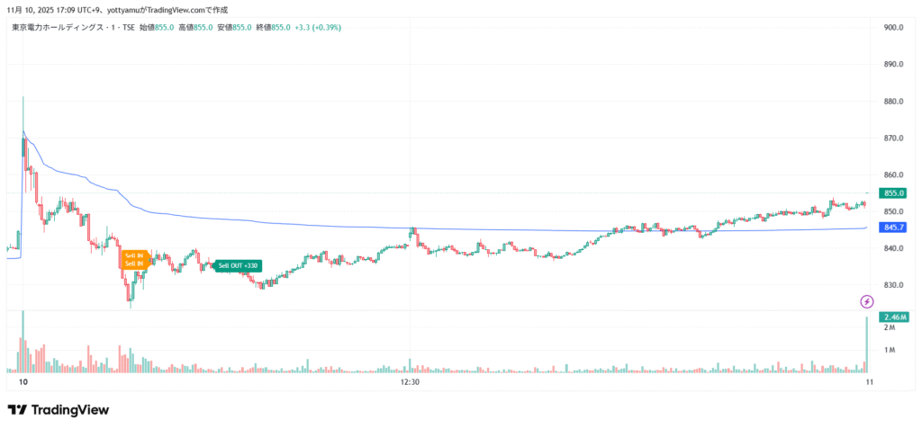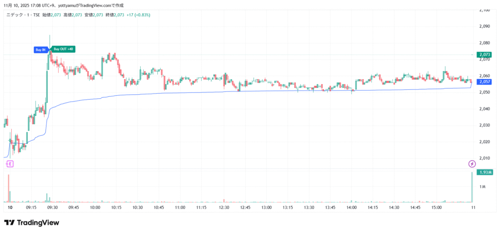 上値余地ありと判断し、急騰乗っかりで入りました。