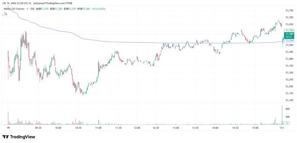 朝方は「トランプ関税が欧州8カ国へ拡大」という報道や、次期FRB議長人事の不透明感からパニック的な売りが先行。しかし、53,000円の大台を割らなかったことで安心感が広がり、後場は「引け後の高市総理会見(衆院解散示唆)」を期待した買い戻しが入り、長い下髭を引く形となりました。難しい一日でした。
