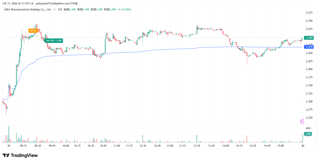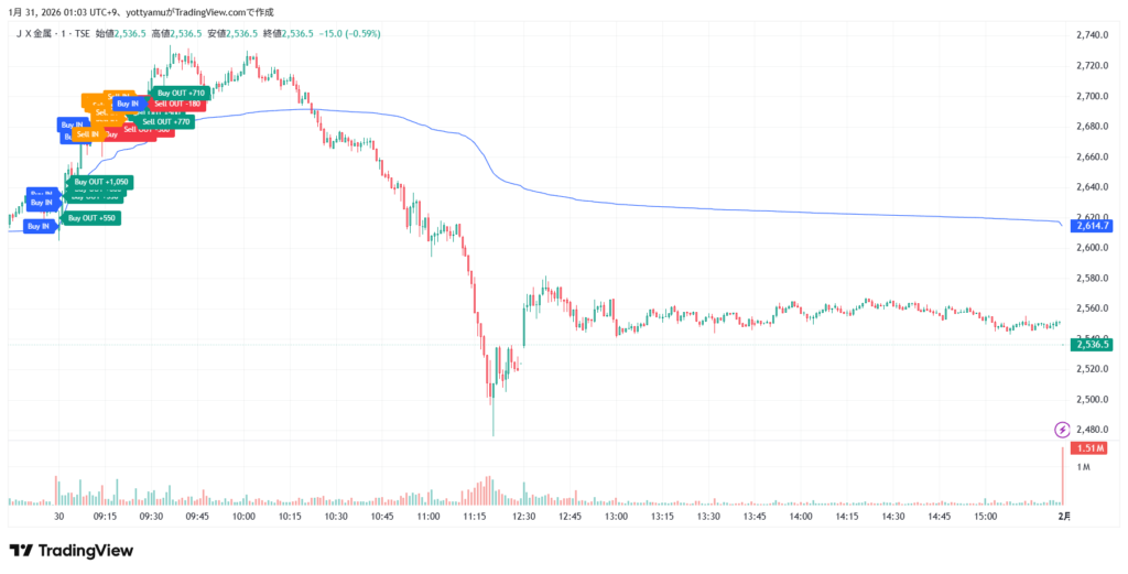 JX金属と同じく前日VWAPあたりで大きな下ヒゲをつけたのでリバウンド狙いで買いエントリーしました。