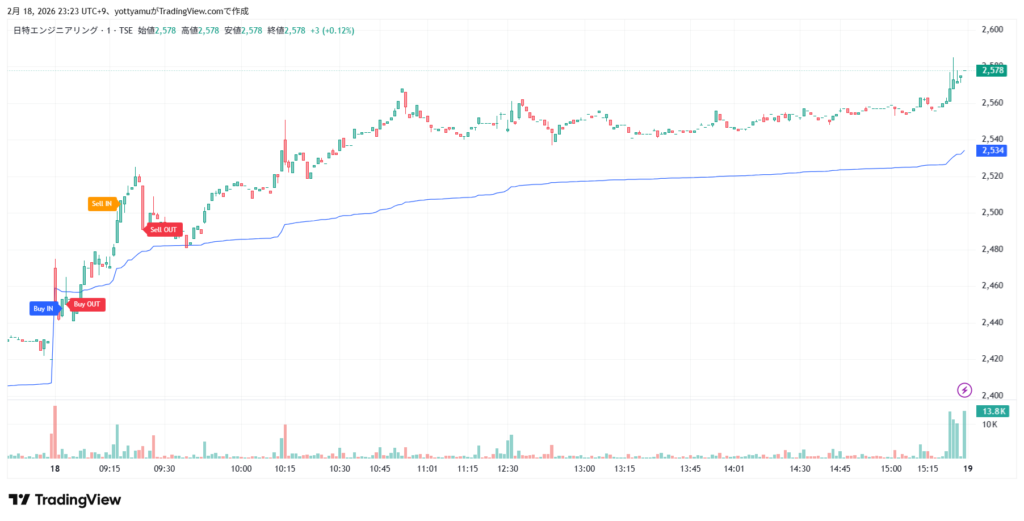 高値手前で利確しました。